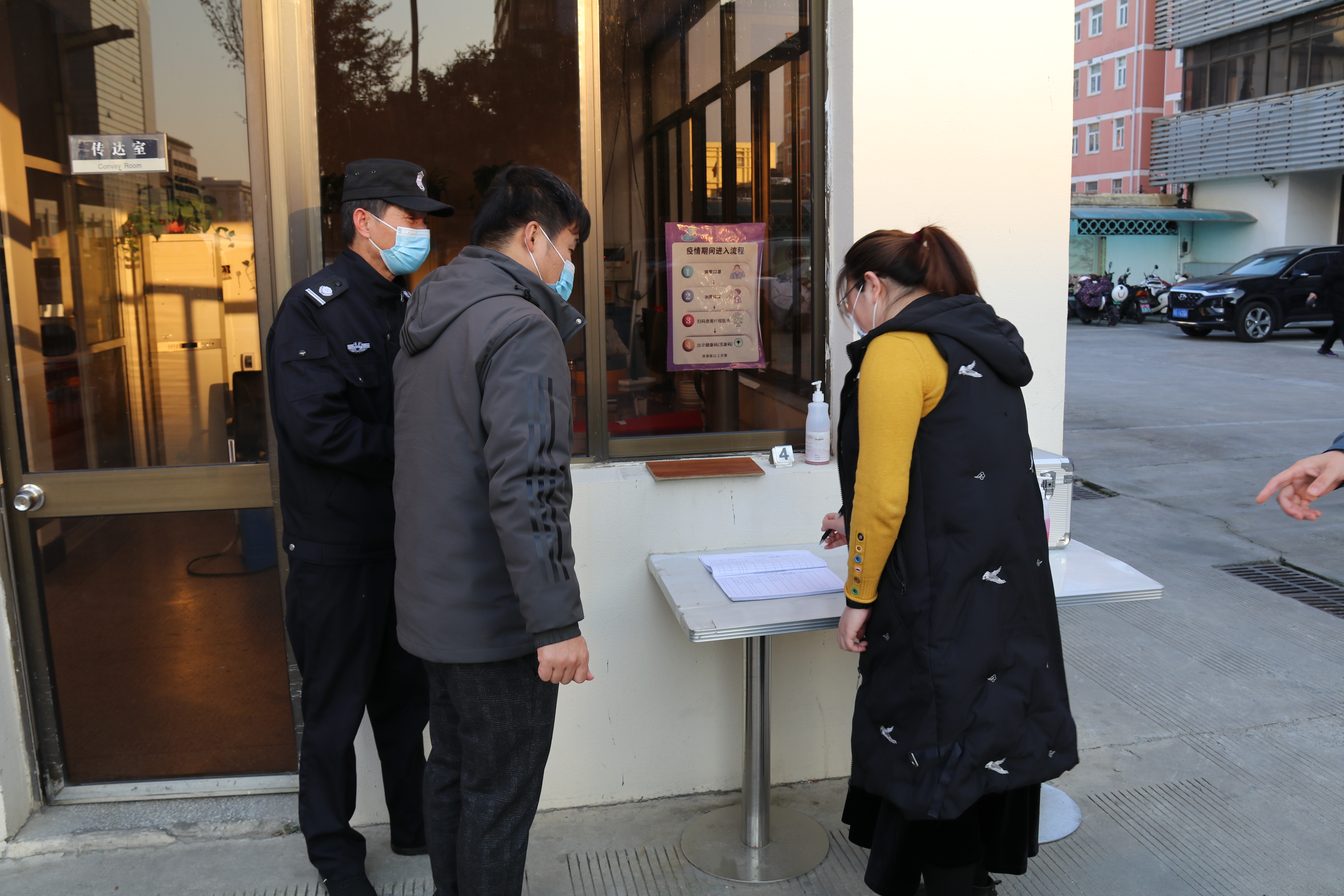 應急小組成員對體溫異常者進行健康碼、行程碼檢查,并對14天內所經地方進行排查登記。