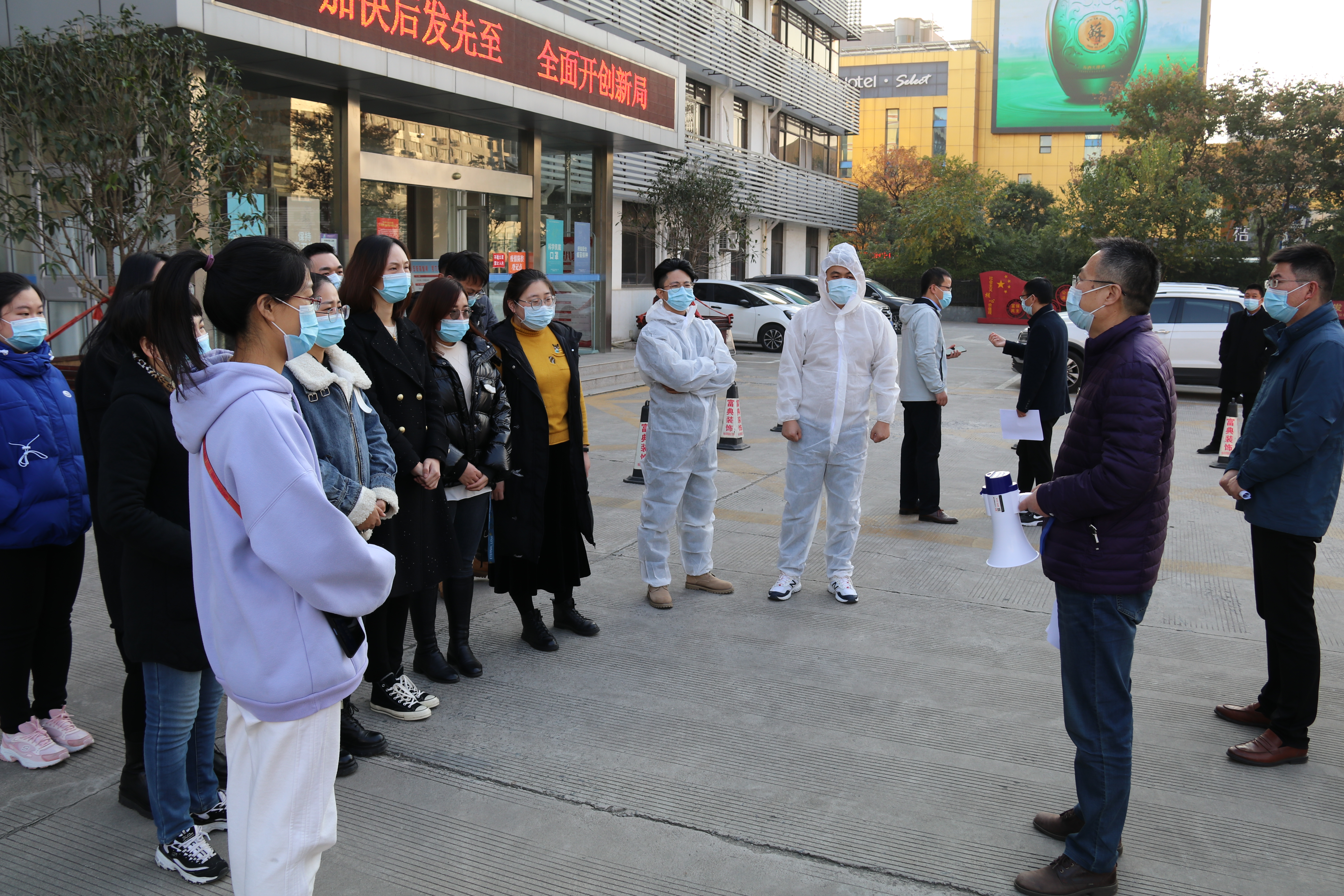 下午3時左右演練正式開始,公司提前制定了新冠肺炎疫情應急處置預案,先后完成桌面推演和實戰演練。演練模擬在辦公樓進門處發現異常發熱員工后,上報疫情防控領導小組,防控小組迅速行動,對發熱員工進行調查、登記、隔離、轉運,并對相關場所進行消毒工作等應急處置措施。