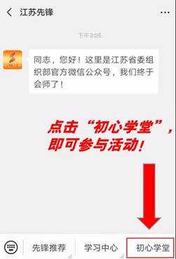 | 各單位黨群工作部: 為引導(dǎo)廣大黨員干部認(rèn)真學(xué)習(xí)《習(xí)近平談治國(guó)理政》第三卷,推動(dòng)黨的科學(xué)理論“飛入尋常百姓家”,“江蘇先鋒”公眾號(hào)特開辟“初心學(xué)堂”小程序,請(qǐng)組織本單位黨員干部8月12日—10月30日登錄“初心學(xué)堂”小程序一起聽音頻、讀原著、悟原理!(請(qǐng)各位黨員登陸后,單位名稱統(tǒng)一填寫為:連云港市工業(yè)投資集團(tuán)有限公司) 第一步:關(guān)注“江蘇先鋒”公眾號(hào)