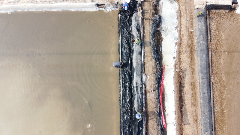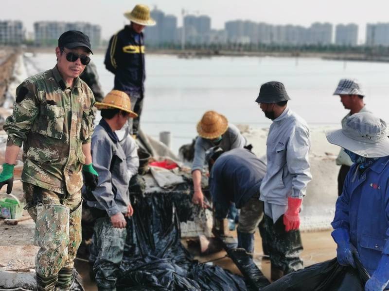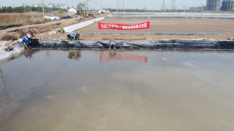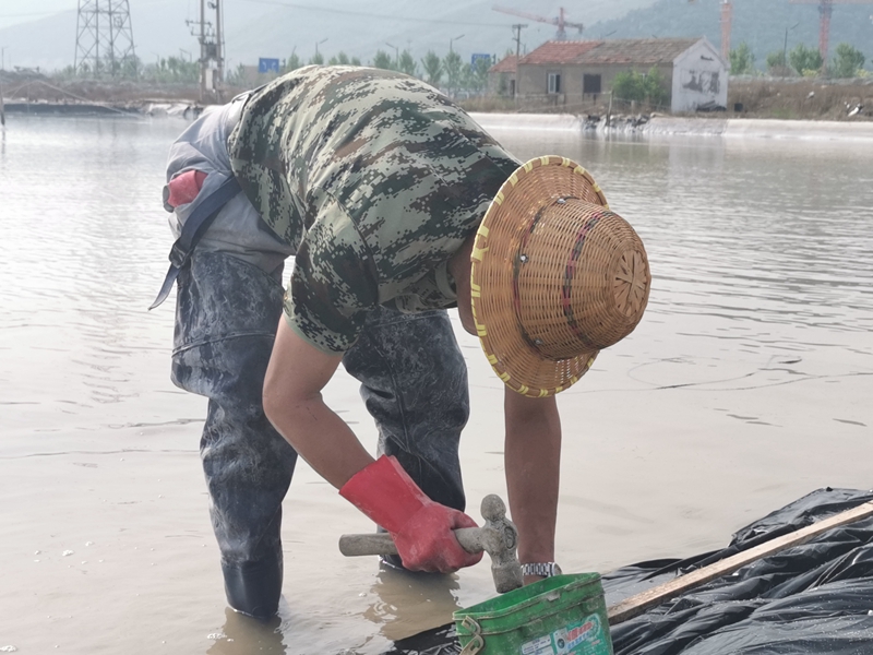 不到半天時間完成了數百米的塑布安裝