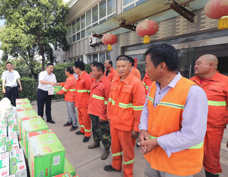 ????? 83日,投資公司黨委書記、董事長(zhǎng)、總經(jīng)理馬德志等領(lǐng)導(dǎo)班子成員分赴基層一線開展送清涼慰問活動(dòng),為奮戰(zhàn)在一線的員工們送去防暑降溫物品和親切慰問。